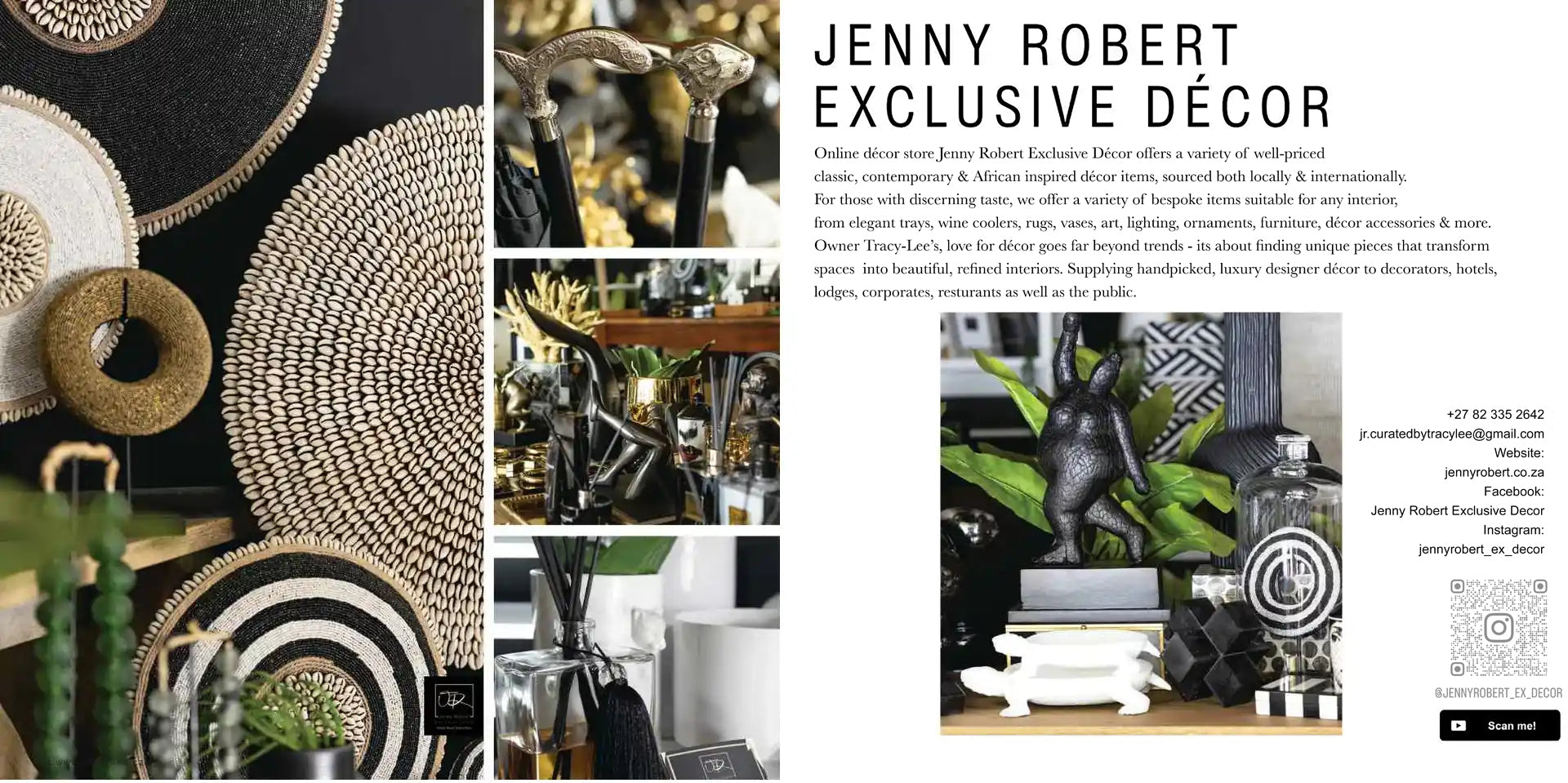 Jenny Robert Exclusive Décor is about expressing oneself in a passionate, warm and unique way. It is for anyone determined to create a special space surrounded with all things beautiful.