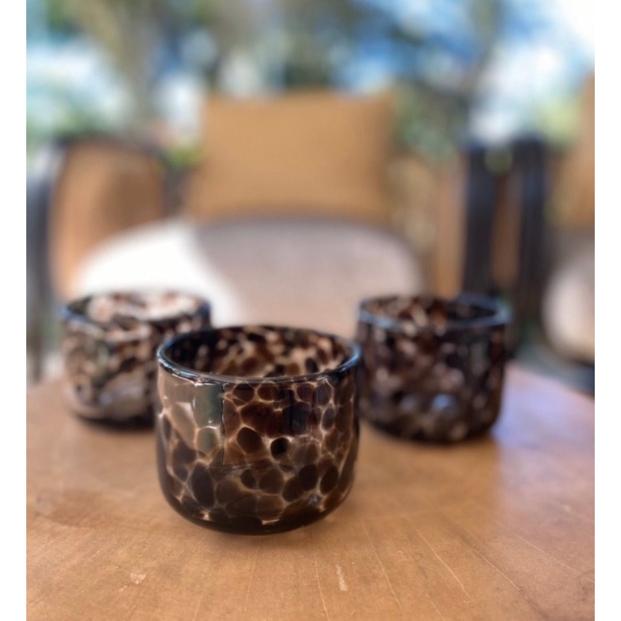 Small tortoiseshell glass T Light Candle holders. Pop a candle in the glass and watch the magnificent glow!