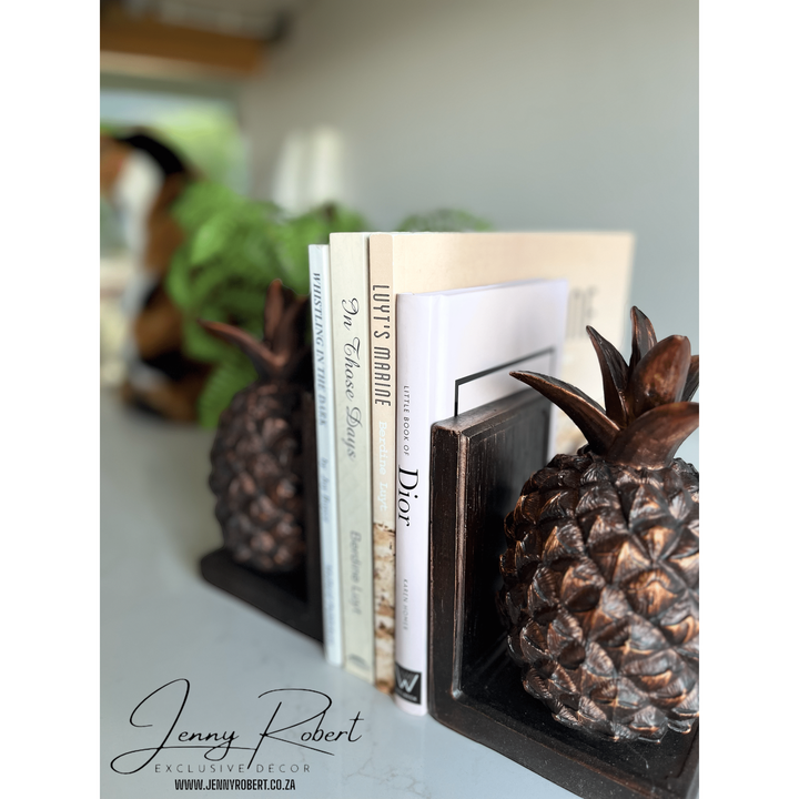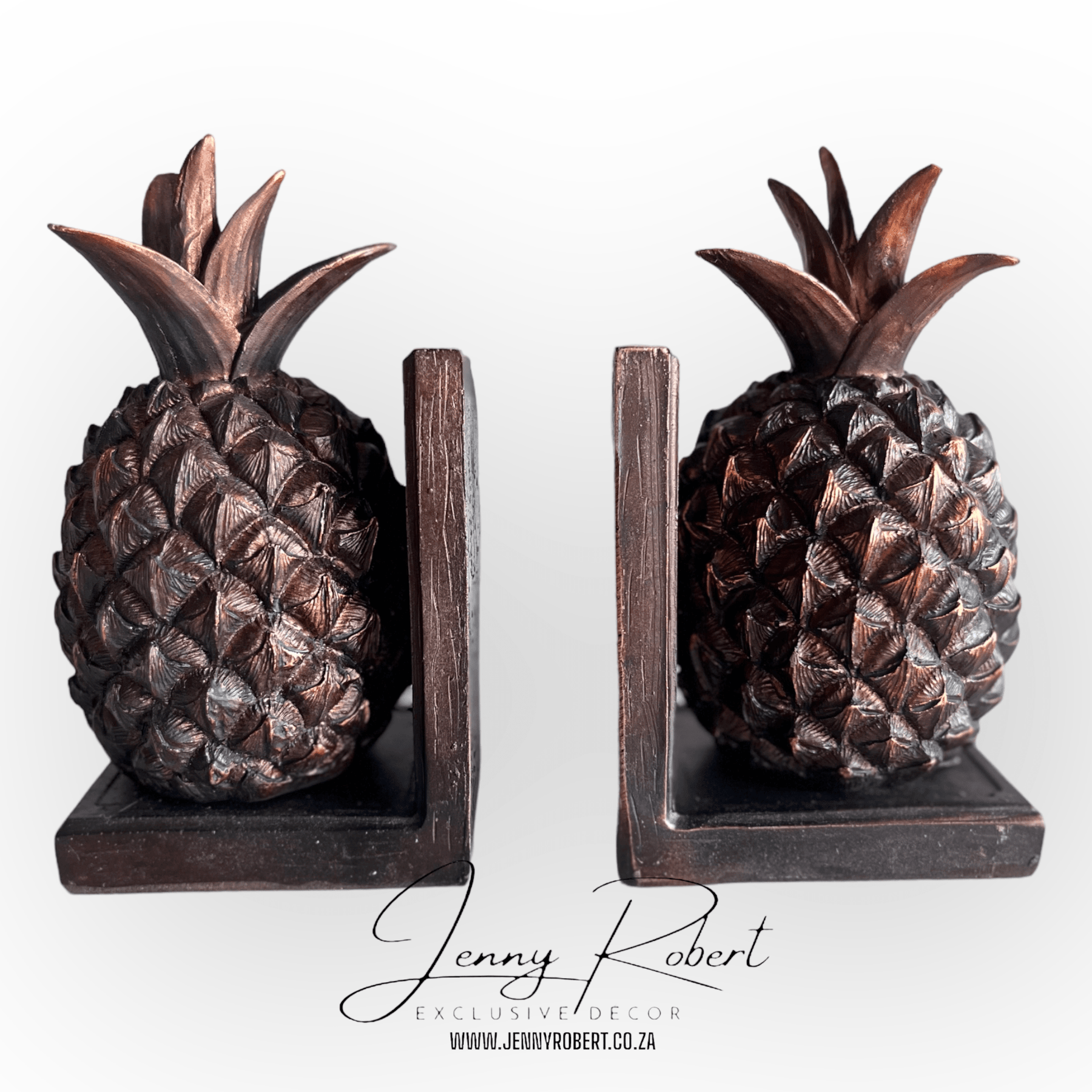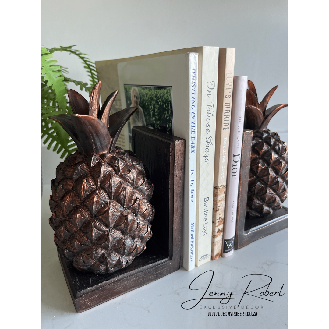 Antique Copper Pineapple Bookend Set of 2 made from resin. A beautiful piece in any mantle, shelf or desk.