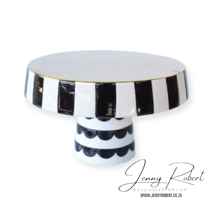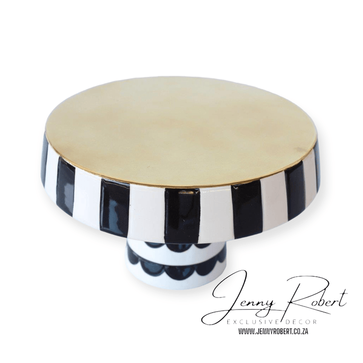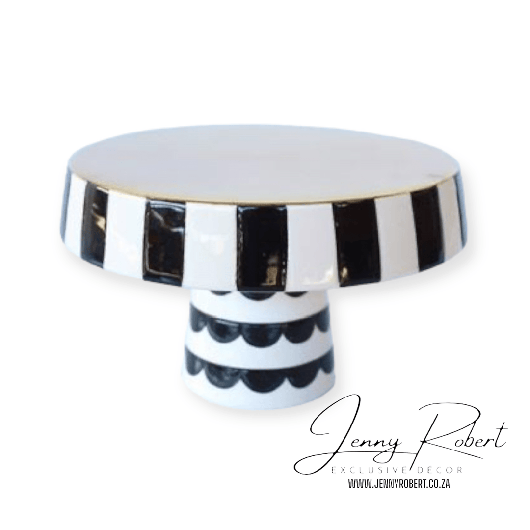 Cake Stand / Display Stand Ceramic Black White and Gold