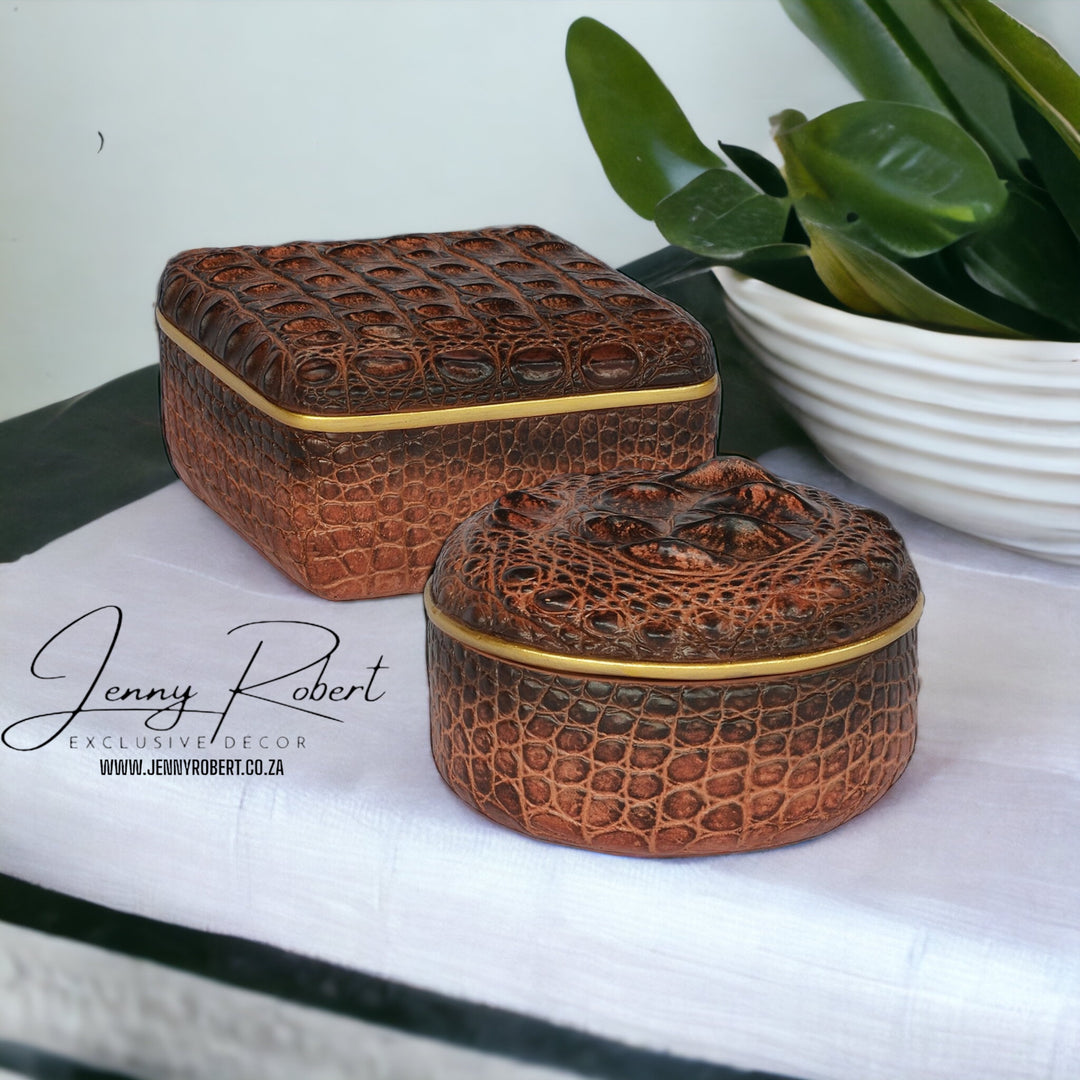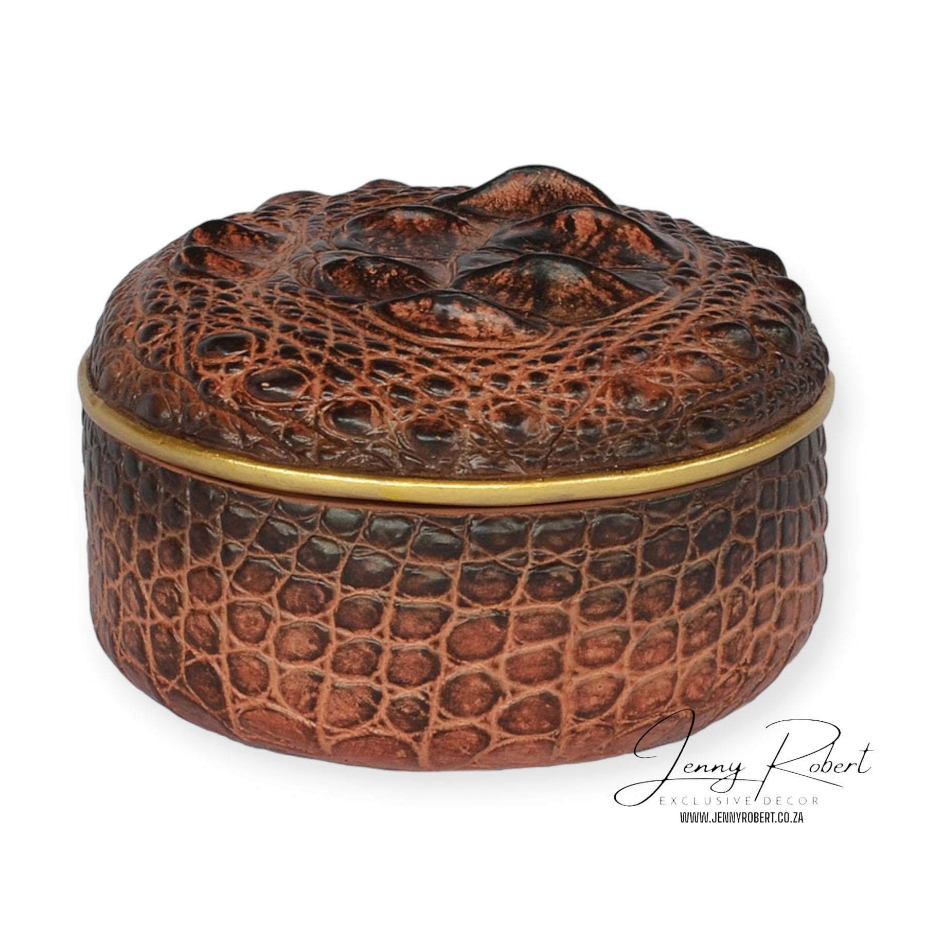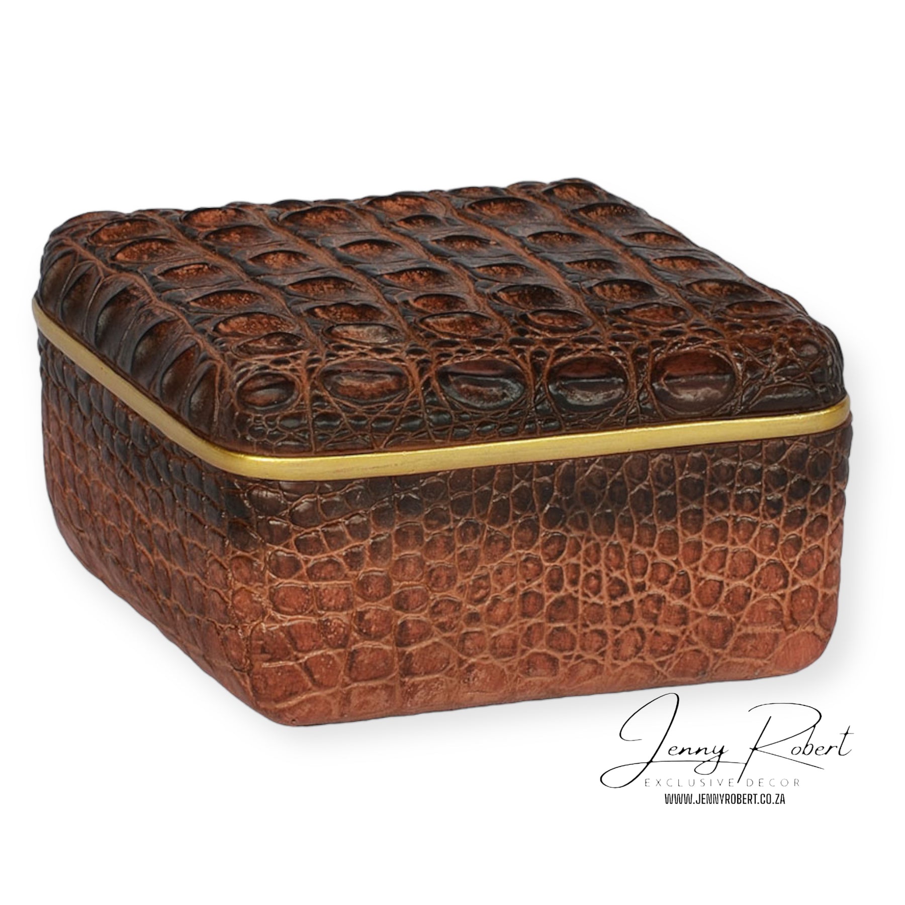 Decorative Box with Crocodile Skin Design in Brown and Gold