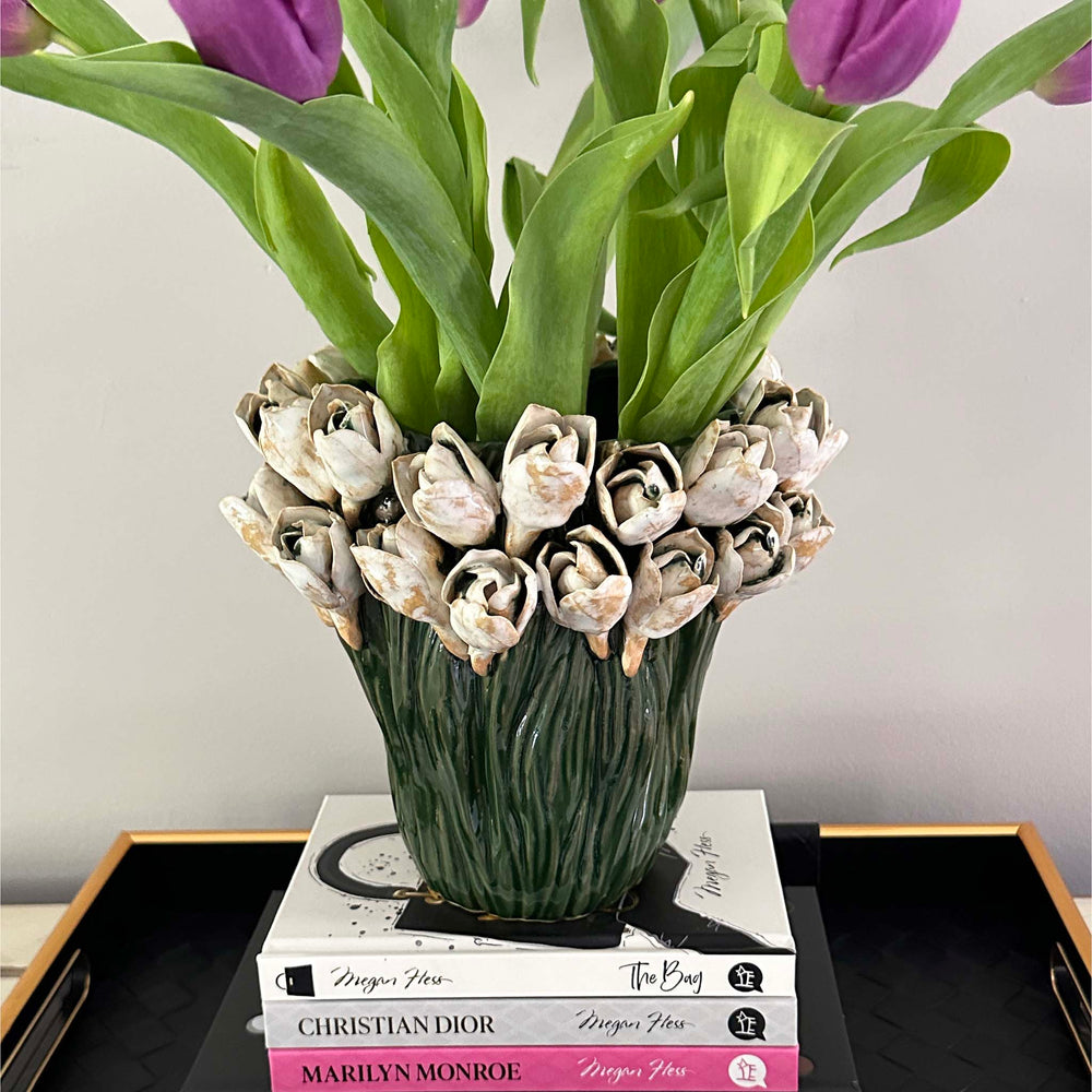 The round ceramic Jade Bowl on a leg is a chic and creative item that effortlessly blends the elegance of ceramics with a contemporary design style. It is adorned with a gentle Jade color finish, adding to its overall allure.