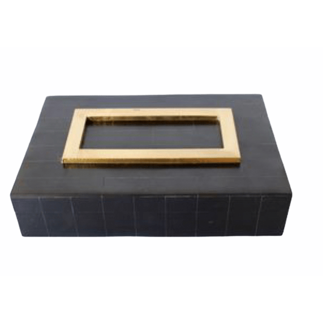 Box Decorative Bone Black with Gold Trim