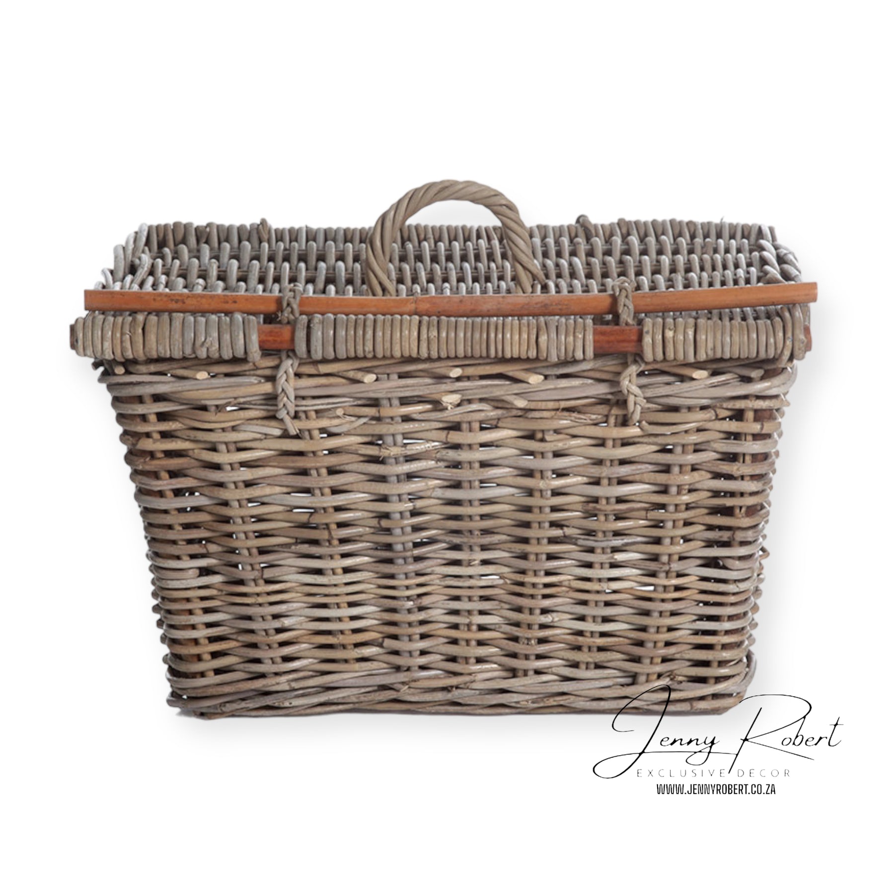 Thick Rattan Picnic Basket Rattan Rectangular Grey